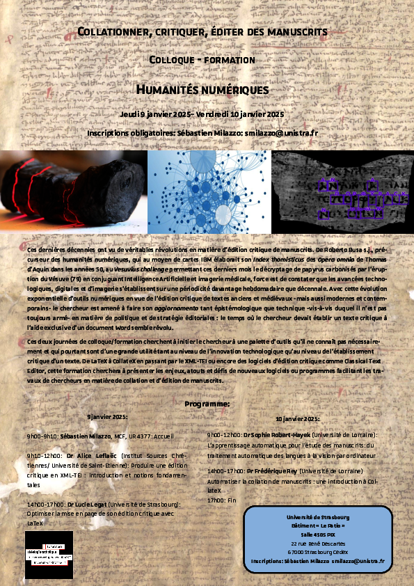 Collationner, Critiquer, Editer des Manuscrits-  Colloque - Formation : HUMANITES.