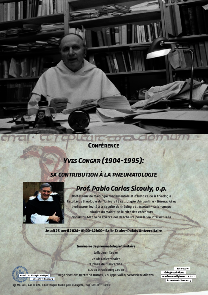 Conférence "Yves Congar (1904-1995): sa contribution à la pneumatologie" Prof. Pablo Sicouly - Séminaire pneumatologie trinitaire, le 25 avril 2024; 8h00-12h00