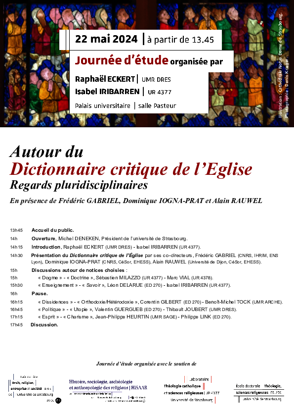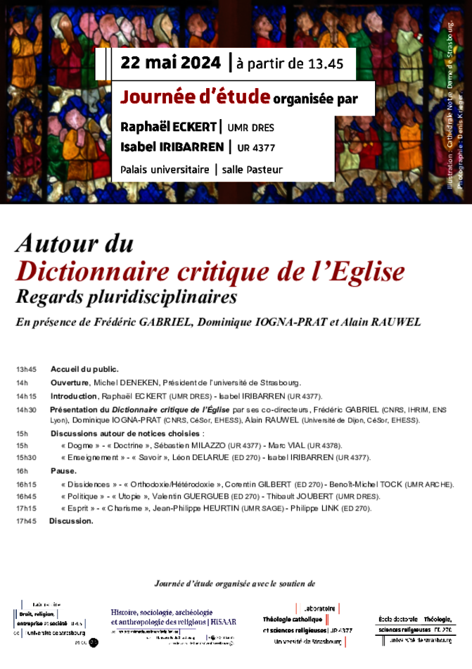 Journée d'étude autour du "Dictionnaire critique de l’Eglise" Regards pluridisciplinaires. En présence de Frédéric GABRIEL, Dominique IOGNA-PRAT et Alain RAUWEL